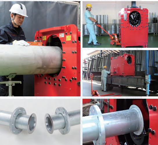 配管施工はルーズフランジとガスケットをボルトで締結する単純作業で完了です。