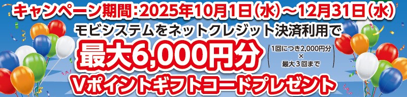 ・V ポイントギフトコードはモビシステムへご登録のメールアドレスへお送りします。