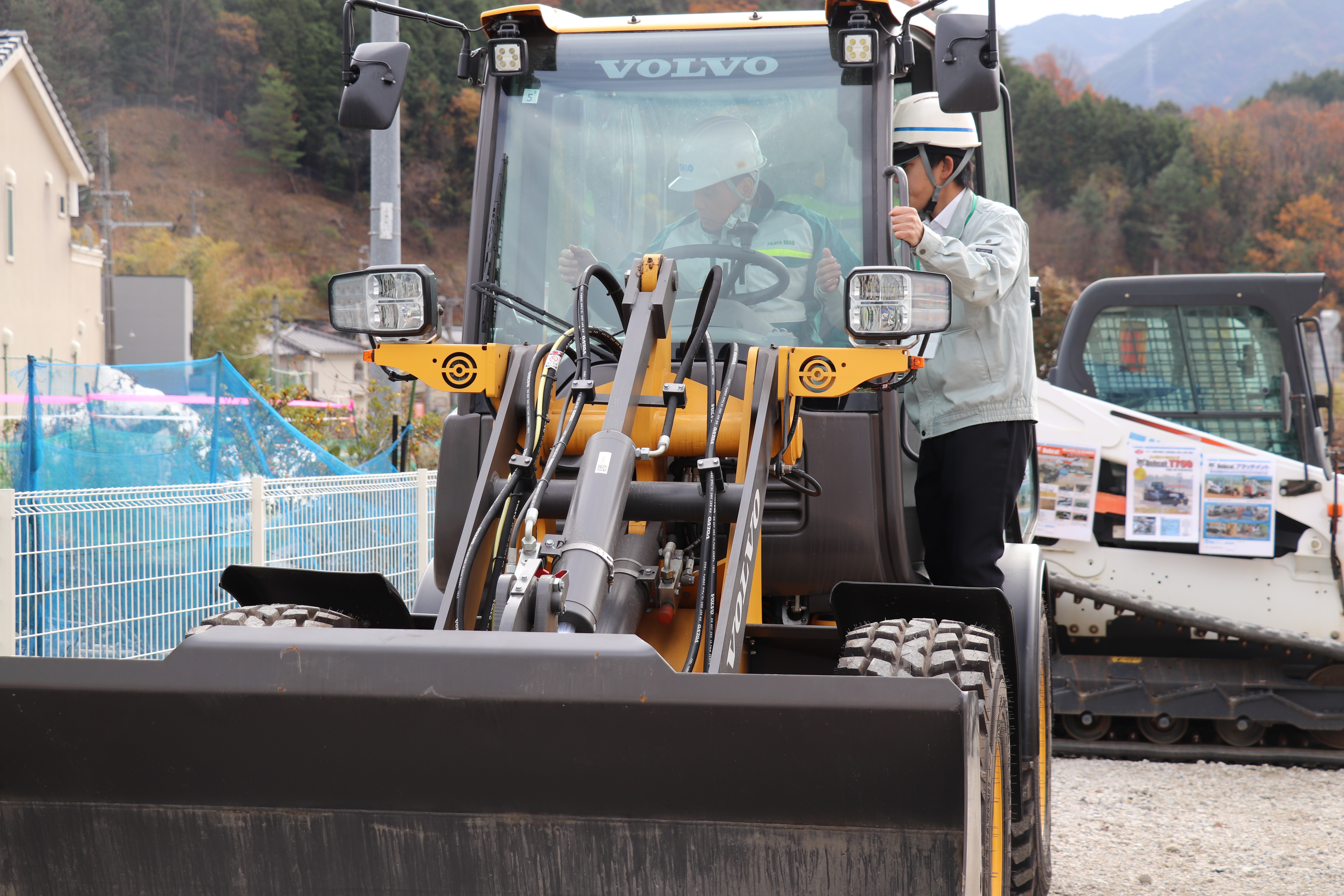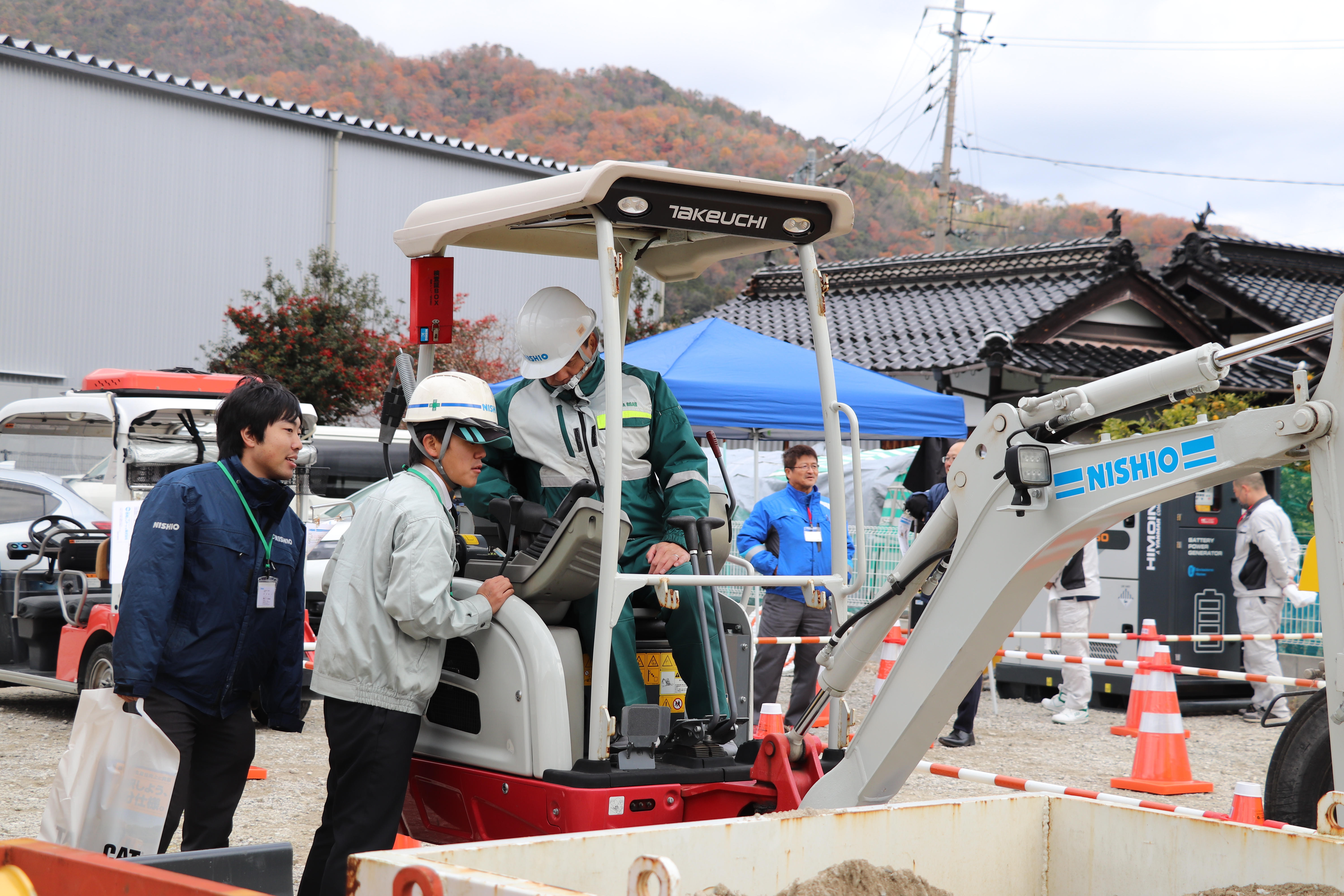 NETIS登録されたリチウムイオンバッテリー化タイヤローラや、国土交通省GX建設機械認定のVOLVO社製電動コンパクトホイールローダ、竹内製作所の電動ミニバックホウなど最新の環境配慮型建機を揃え体感いただき、「思った以上に音が静かだ」「夜の現場にいいかもしれない」など静音性やエンジン機と変わらない操作性に驚きの声が聞かれました。