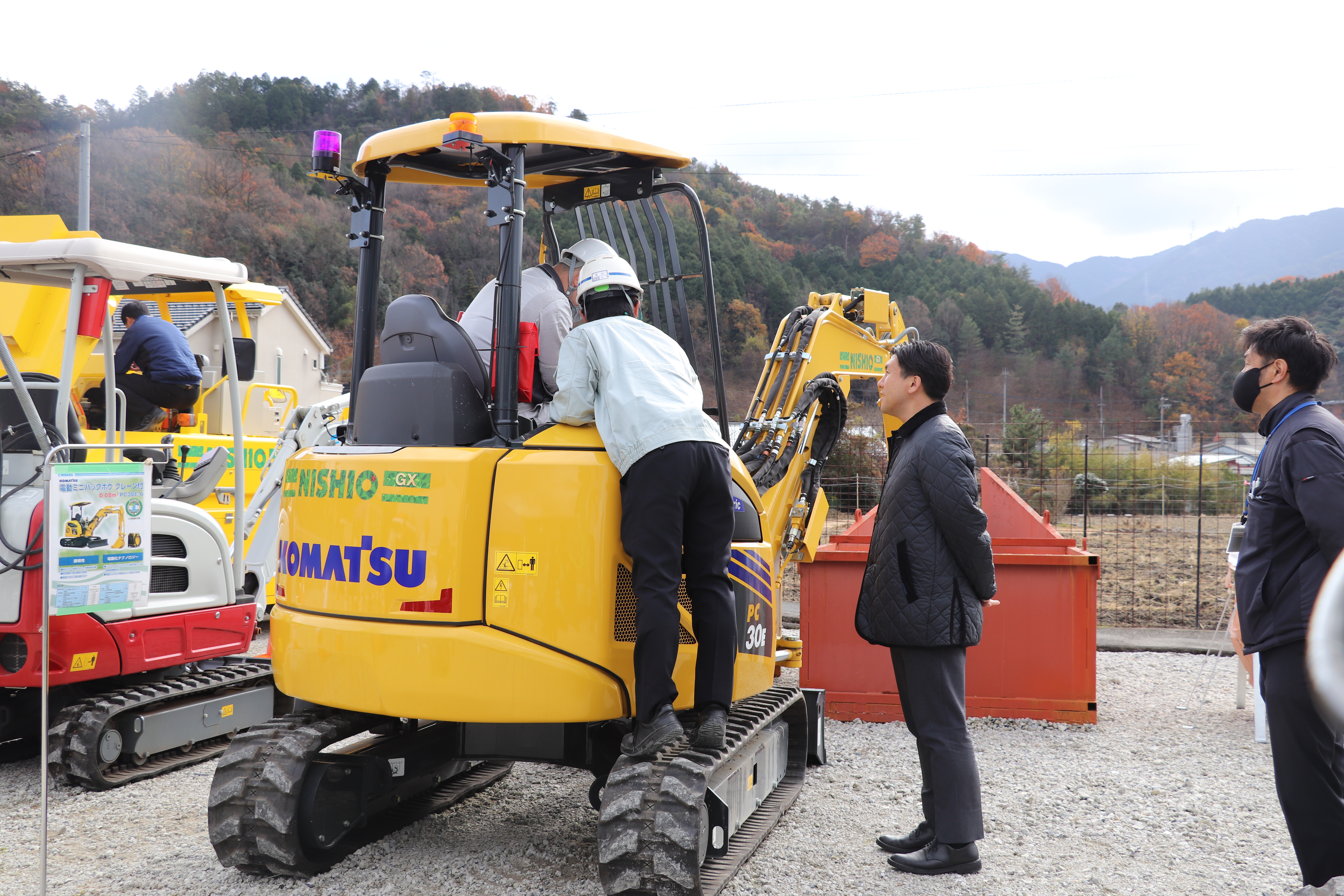 西尾レントオール西中国営業部は、12月12日(金)~12月13日(土)の2日間にわたり、広島市内にある当社の三入機材ヤードにて土木・舗装会社向け「GX建機体験セミナー」および「GXテクノフェア」を実施しました。