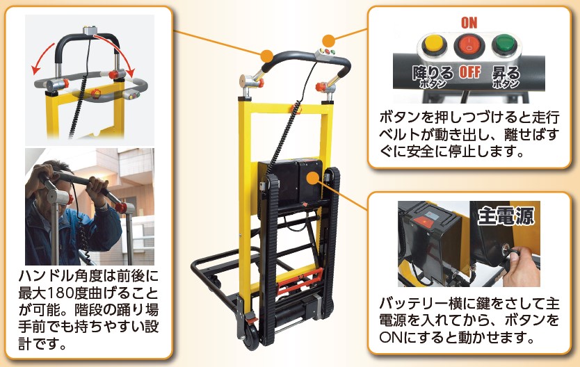 ・ハンドル角度は180度調整可能で階段の踊り場手前でもハンドルが持ちやすい