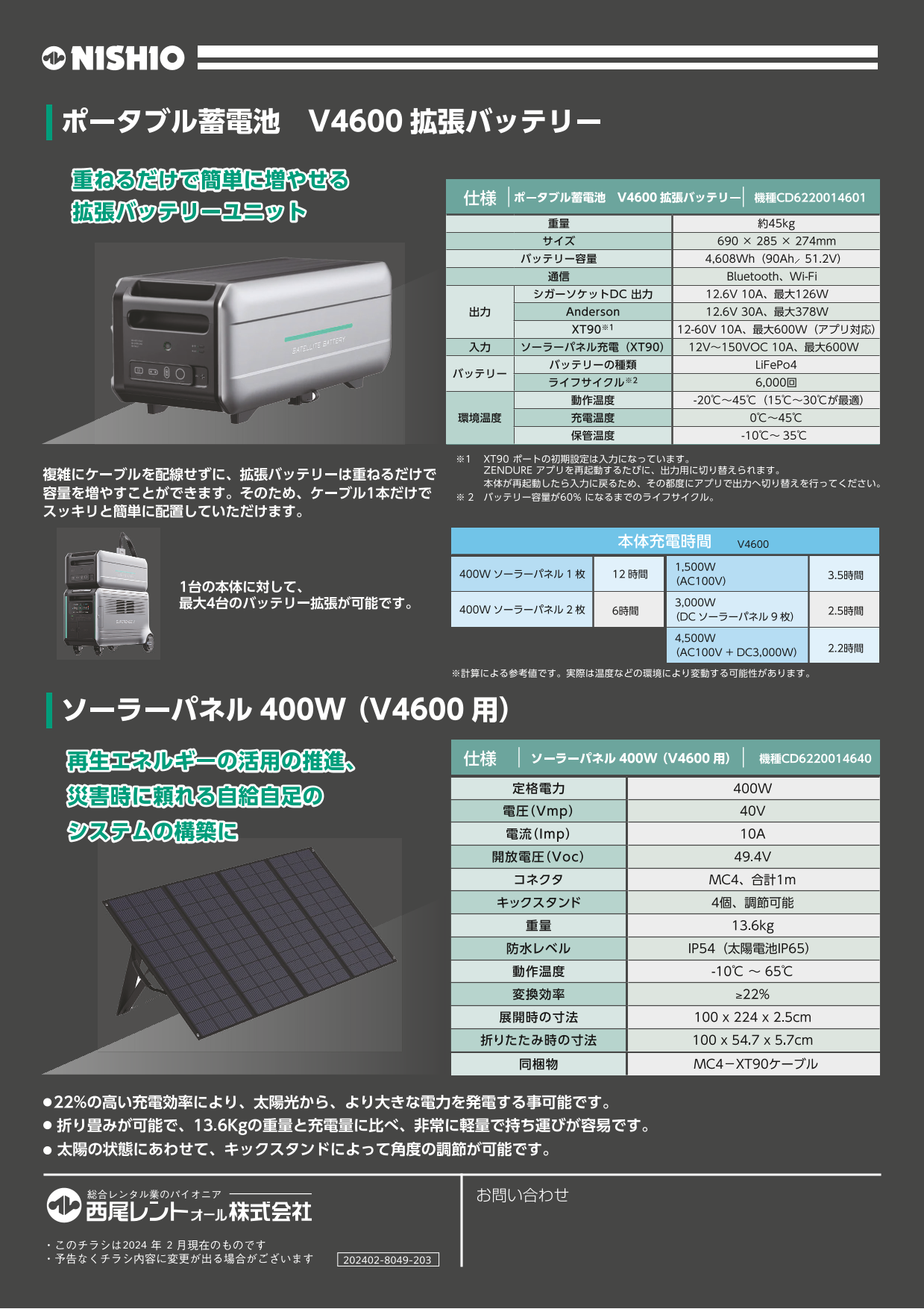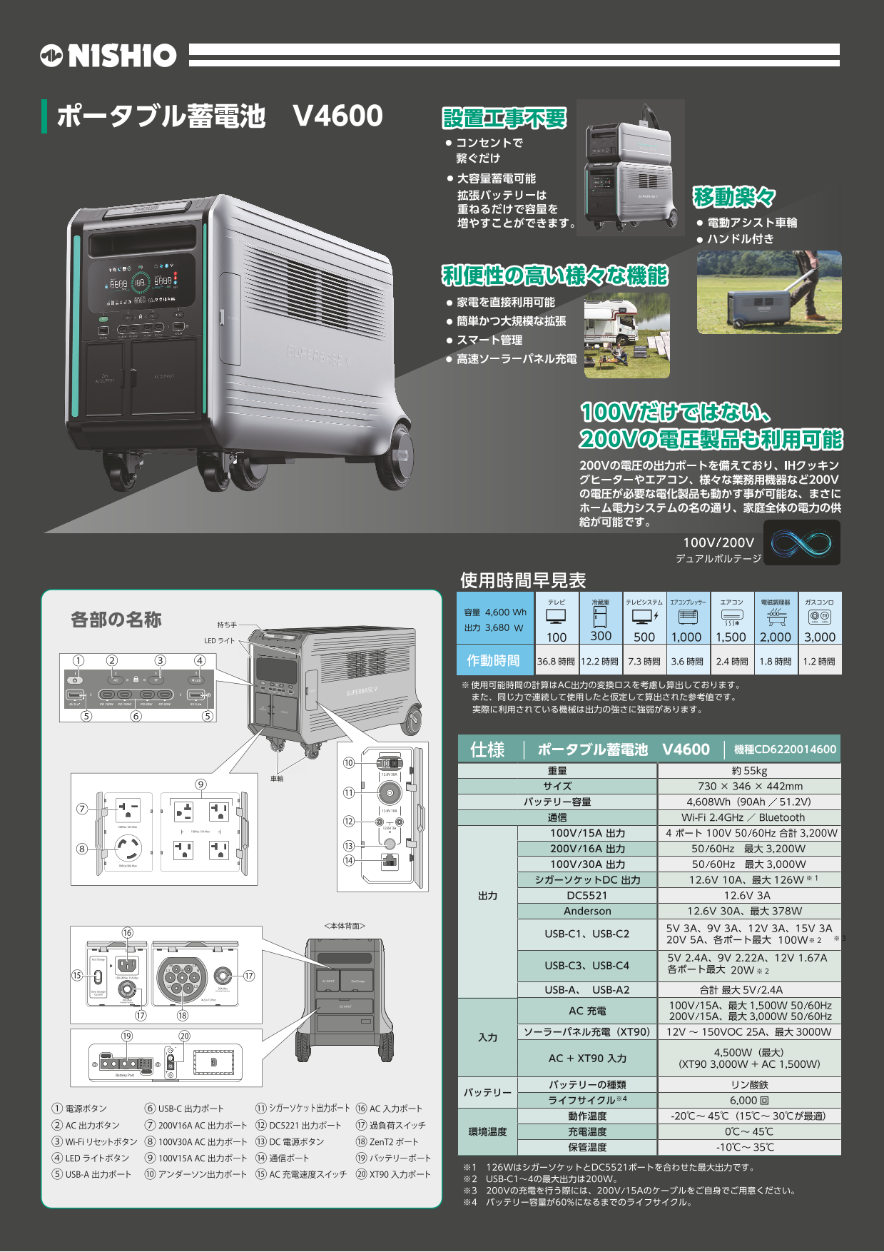 ポータブル蓄電池V4600本体とセットでご選択ください。