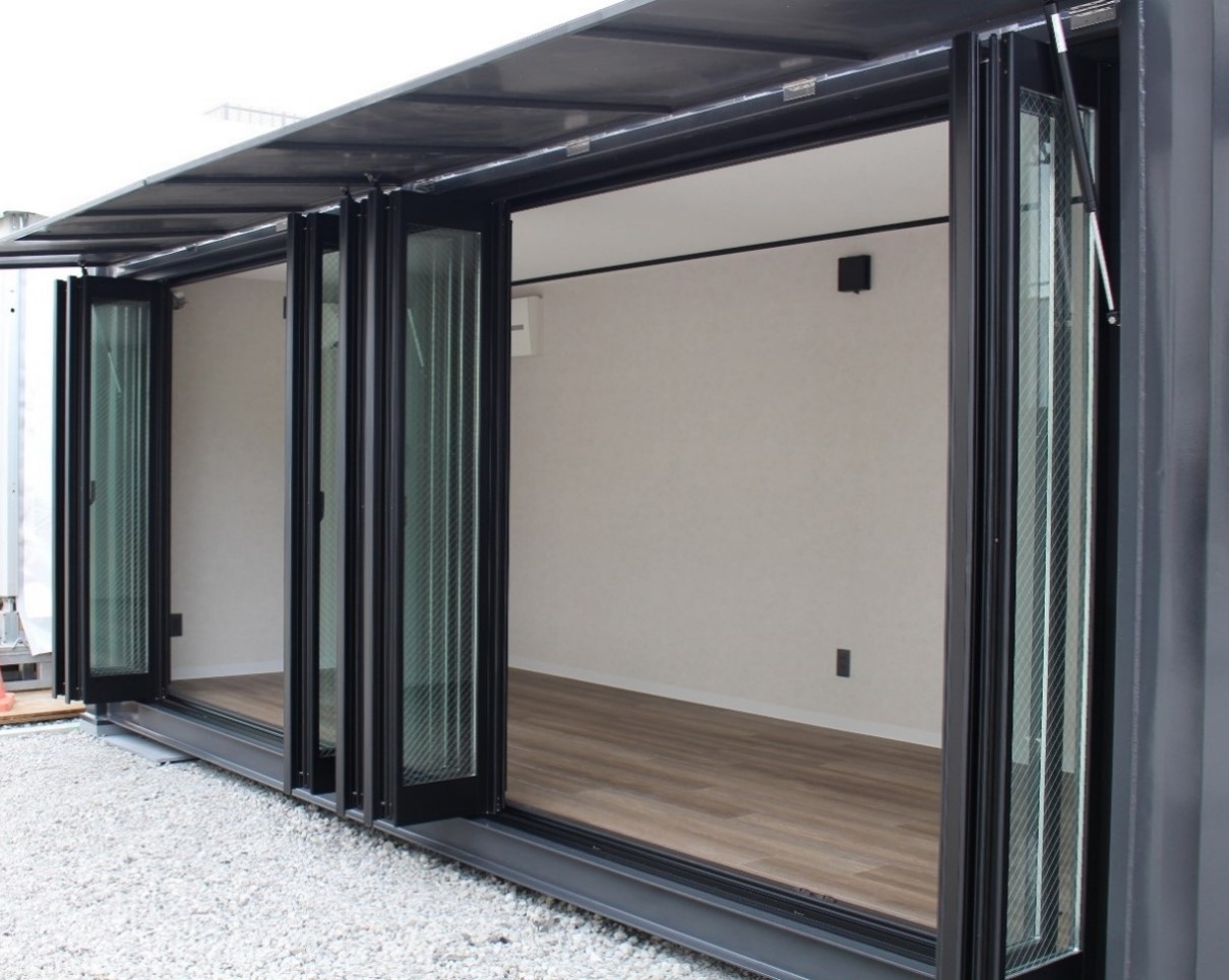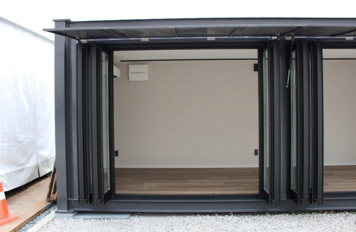 ・スライド式で折り畳み可能な窓のため、開放的で風通しの良い造り
