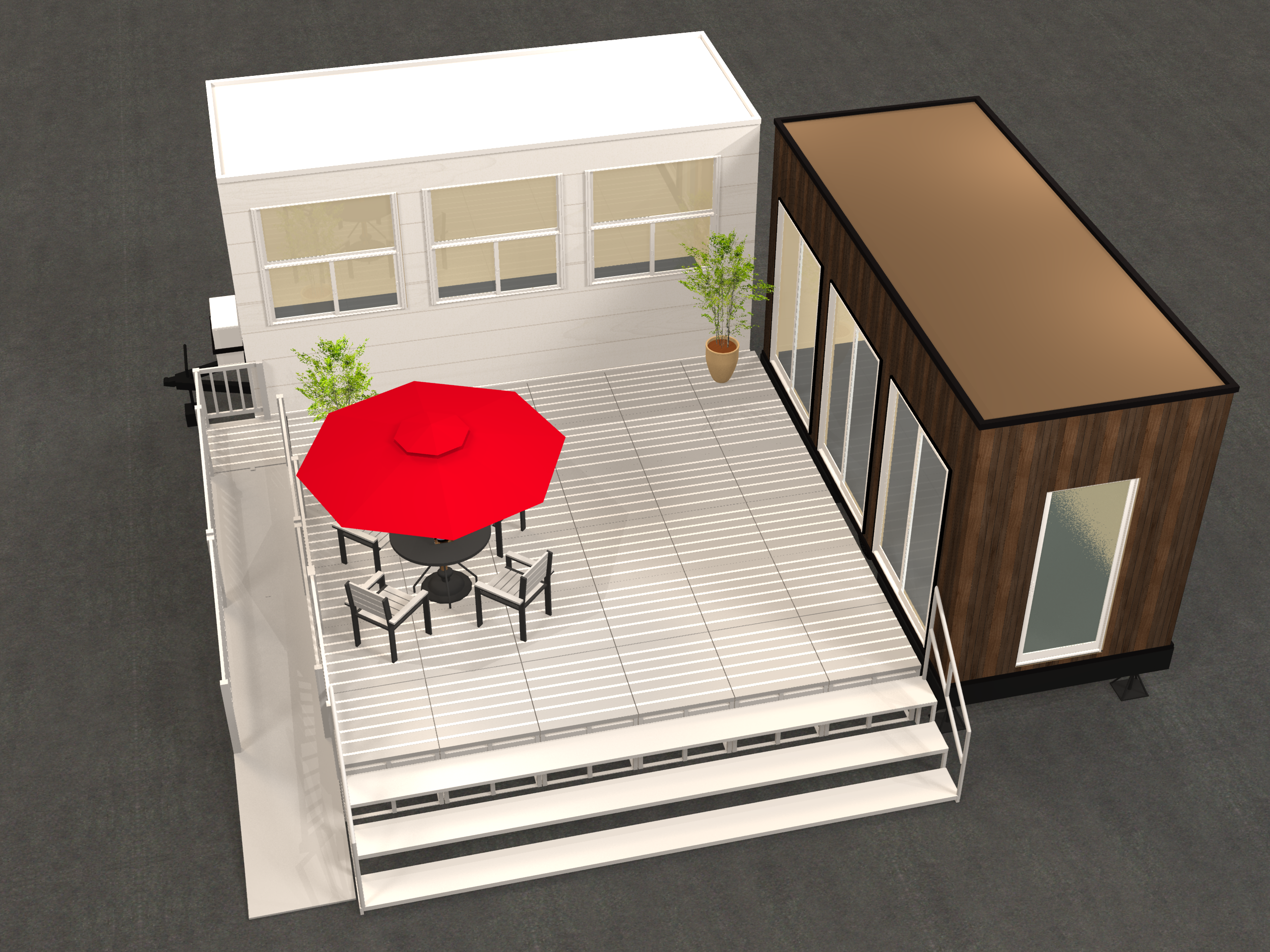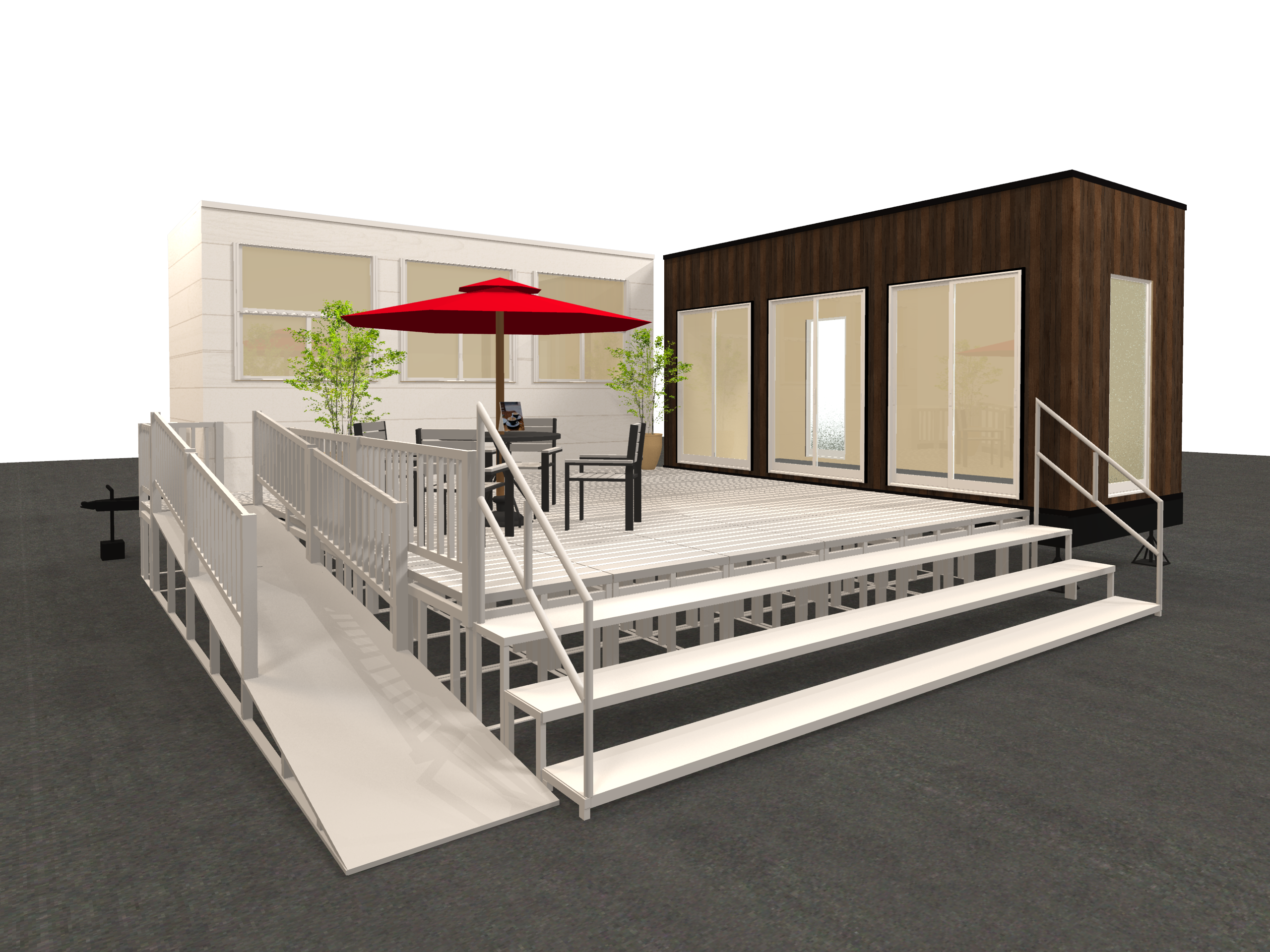 トレーラーハウスと合わせてデッキ・スロープのレンタルが可能!