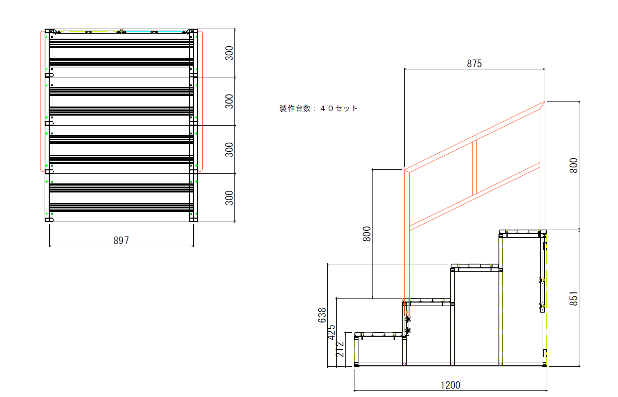 ②ステップ側面用手すり 水平荷試験:最大値600N