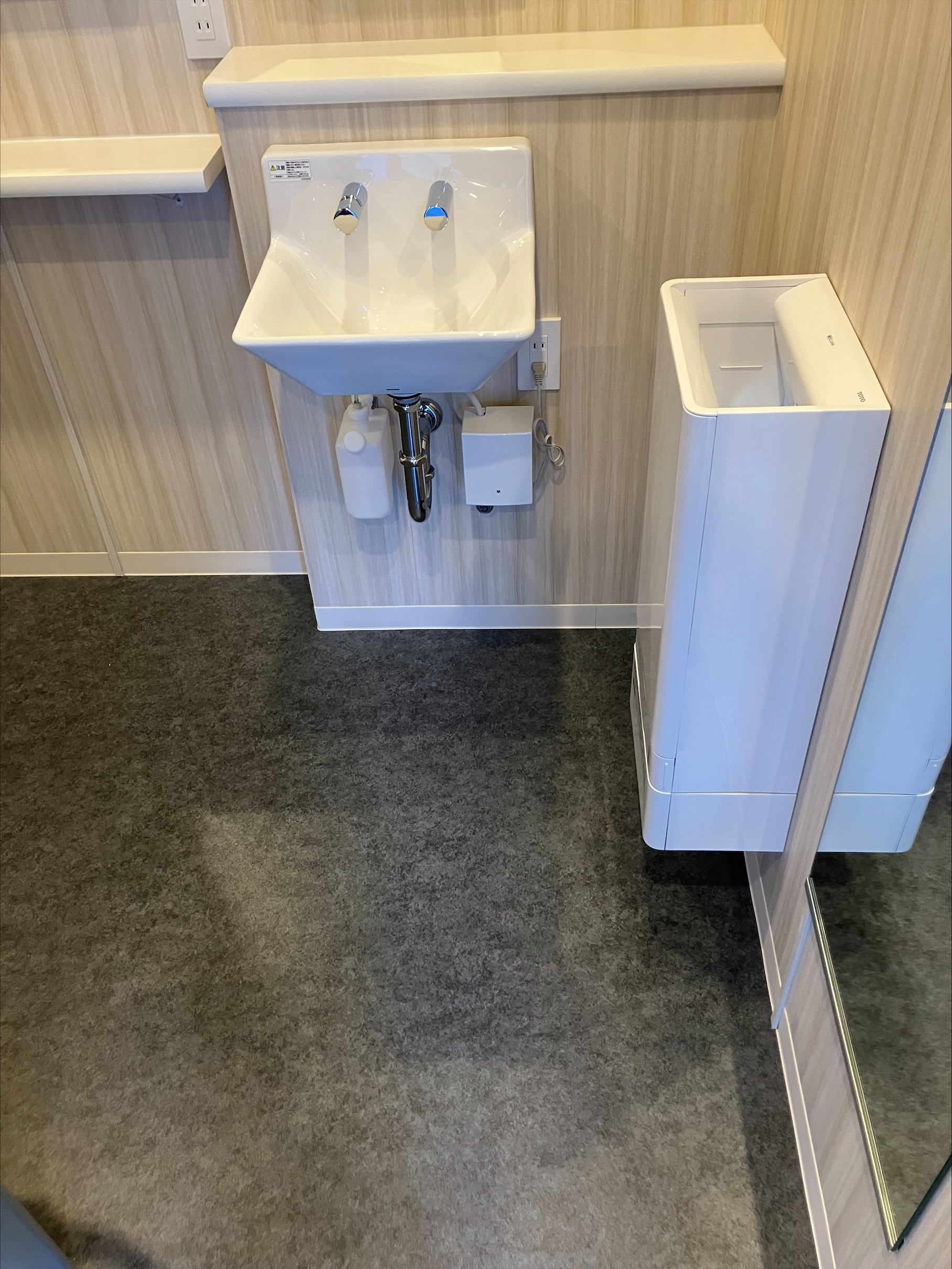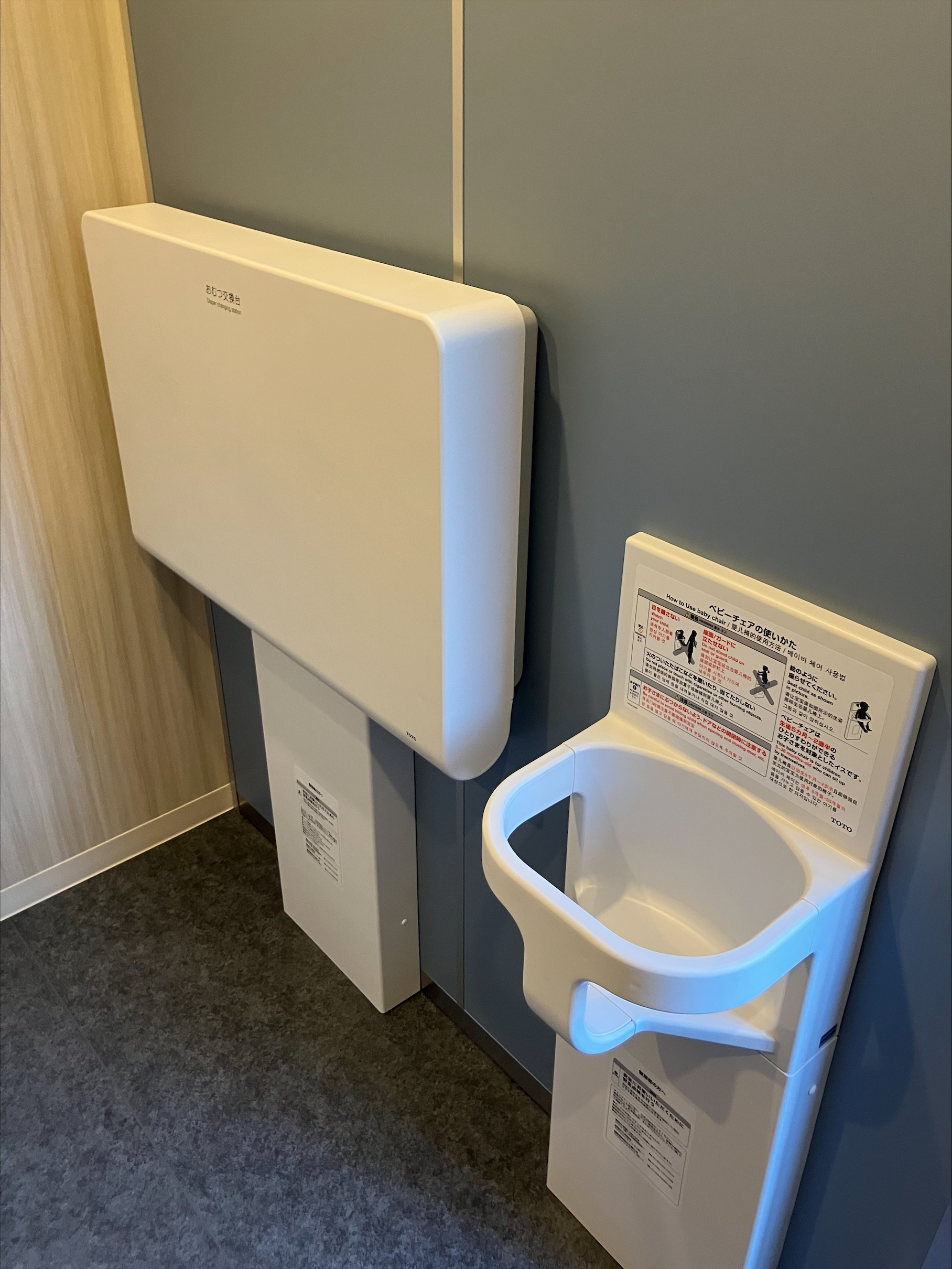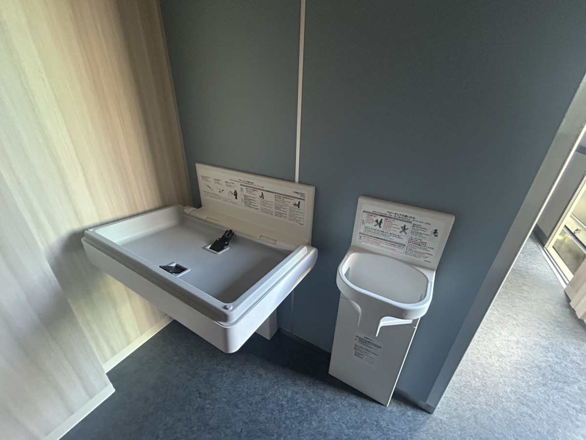 ベビーチェアとおむつ交換台も備え、機能性を兼ね備えたトイレです。