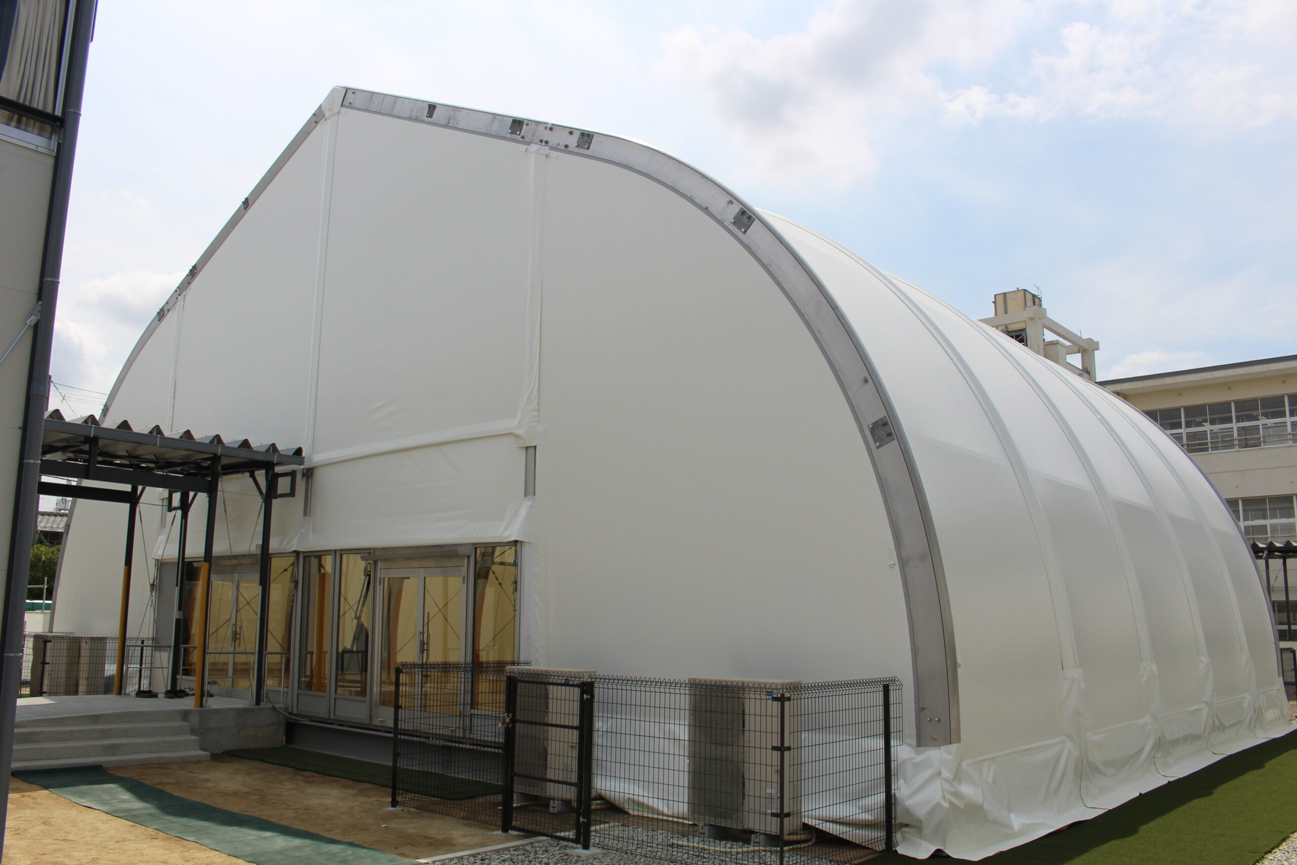 当社で小学校体育館建て替えに伴う仮設体育館を施工いたしました。