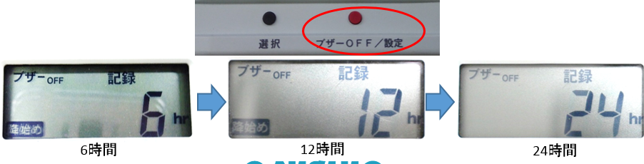③【●】を押すごとに1時間⇒1日⇒降始めの順に切り換えることができます。