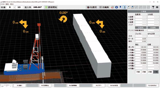 | ◼3次元表示により高精度・効率的に誘導ができます ◼GNSSから杭芯の2次元及び3次元位置情報を取得し 平面位置+3次元表示でガイダンスします ◼平面表示に比べ立体的な表現をすることによりオペレーターへよりリアルなガイダンスが可能 |