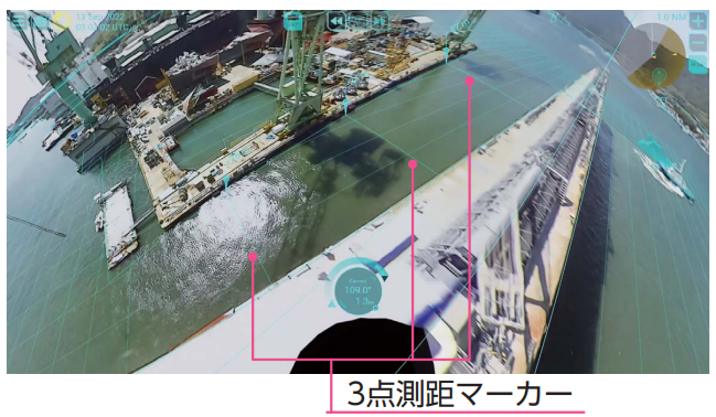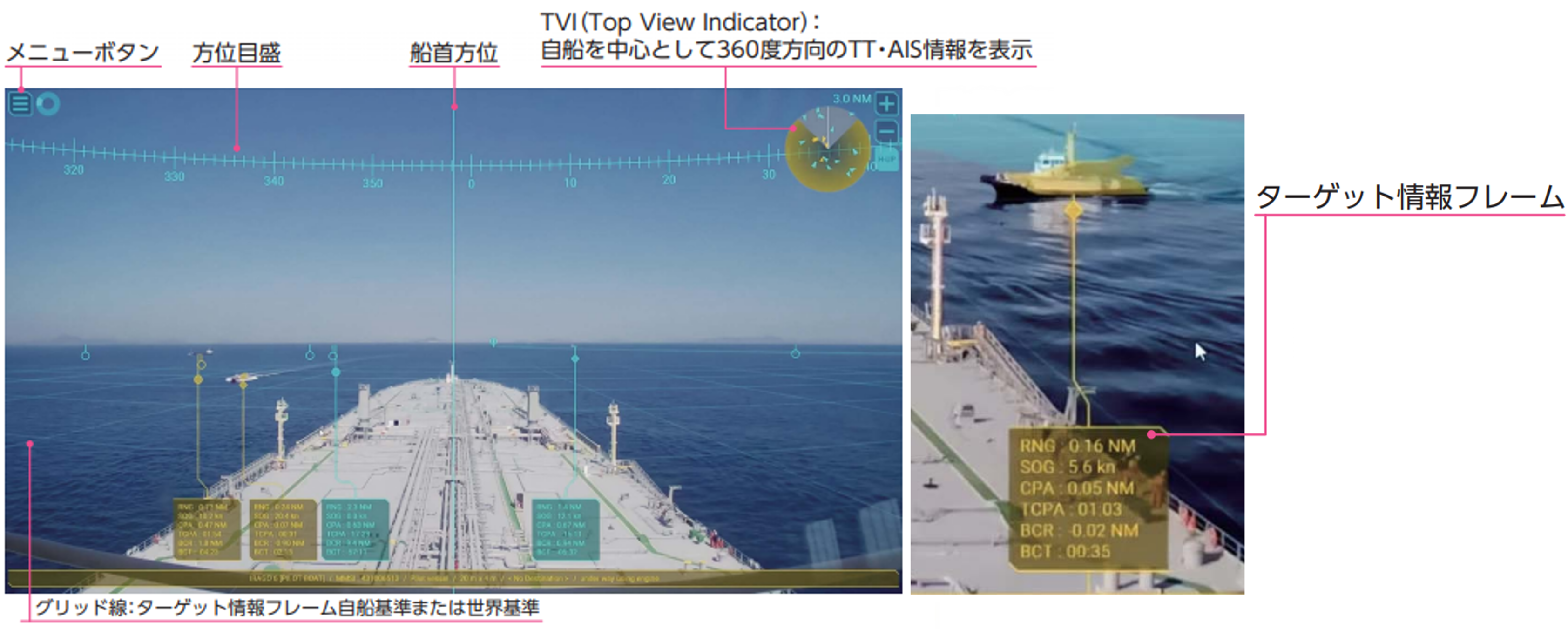 船舶の前方に向けて設置したIPカメラの映像をディスプレイ上に映し出し、その画面上にAR技術を用いて航行に必要な情報を重畳表示