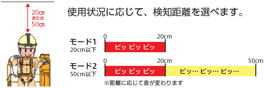 モード1:20cm以下 モード2:50cm以下 |