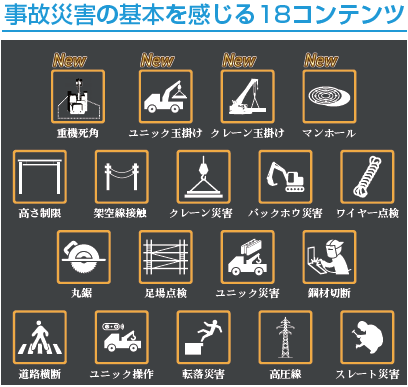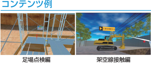 ●VRデバイスと3Dモデルを連動させることにより、3DCG空間内に自分自身が没入しているかのような臨場感の中、実際に発生した労働災害を体験可能 ●被災体験後に、なぜ災害が起こったのか、どのような対策を講じるべきかを議論し、危険予知能力・安全意識の向上に貢献できるシステム ●スタンドアローン型VRの採用により、外部機器に接続することなく、VR単体で利用することが可能 ●従来の足場点検編やクレーン編などの12コンテンツに加え、「架空接触編」「高さ制限確認編」に続き、「重機死角編」「玉掛け編(ユニック/クレーン)」「マンホール・ピット編」を追加した18コンテンツをご用意 ●安全大会や雇入れ時教育・送り出し教育・新規入場者研修などに最適 |