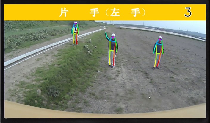 ※合図者が後ろ向きで合図を出した場合でも、同様に検知が可能。その際、左手or右手の識別もできます。