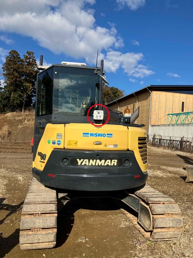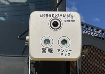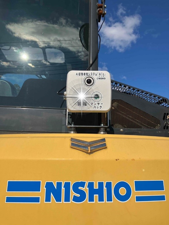 侵入者へは重機後方に設置したAIカメラ左下のLED点灯(白色)で警告を発報することが可能。
